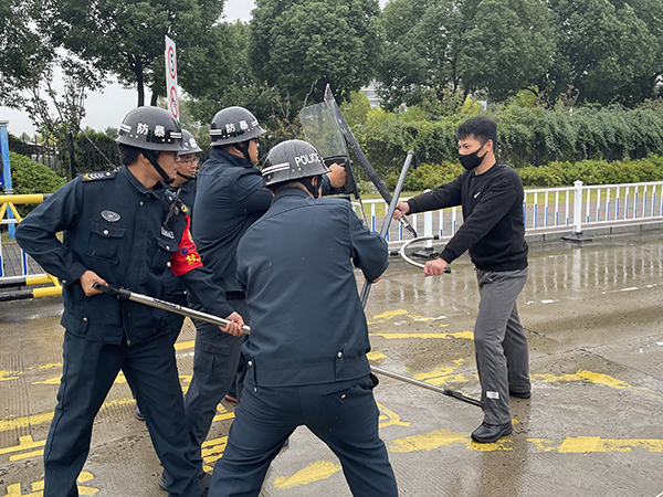 演练过程中,面对模拟“歹徒”的突然袭击,校卫队反应迅速、配合默契,第一时间启动应急预案,运用盾牌、钢叉等专业防暴器械,与驻校警务人员协同作战,迅速将“歹徒”制服。整场演练组织有序、处置高效,充分展现了我校安保队伍过硬的业务素质和应急能力。