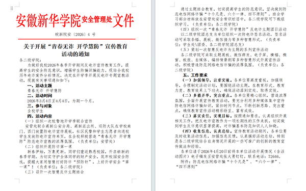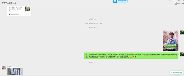 针对节假日期间电信诈骗案件易发高发的特点,学校建立常态化提醒机制。每到周末及放假前,学生处、安管处通过钉钉、微信等工作平台,专门向全体学生推送防诈温馨提示,结合节假日高发骗局类型进行精准预警,提醒学生合理安排假期生活,切勿轻信陌生链接、陌生来电,切实守护好个人财产安全。