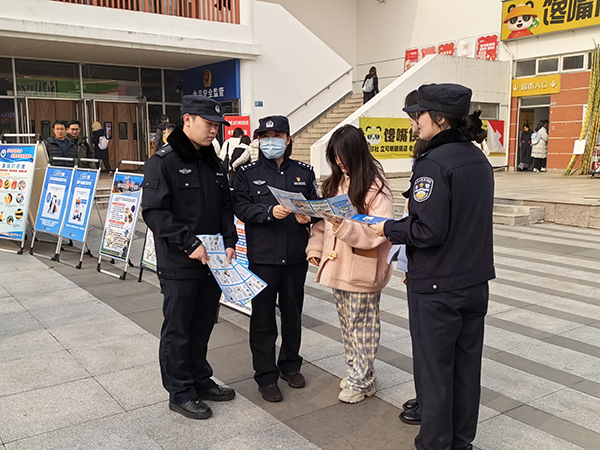 本网讯(通讯员:朱驷凡)为强化警校联动,提升师生安全防范意识与法治观念,12月17日,我校联合高新公安刑警大队、巡防大队、政保大队、高新派出所和高新交警大队,在二期生活广场开展“警察公共关系月”暨治安防范宣教活动。副校长贺行佳,安全管理处副处长仇陶、余申富参加此次活动。