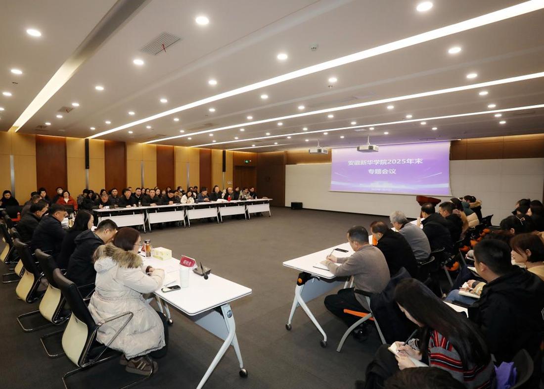 (本网讯 通讯员 徐清清 摄影 翟漱文)1月26日,学校在科研楼一楼多媒体室召开2025年末专题会议。新华集团副总裁、学校董事长王孝武,全体校领导,各单位、各部门助理及以上管理人员参加会议。会议由常务副校长王丽主持。