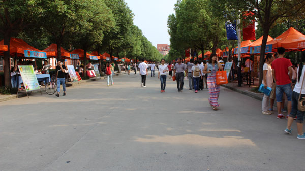 为迎接2013届新生,我校共38个学生社团齐出新招,使迎新工作有条不紊地进行着。29日起,各社团已经就已经搭建好帐篷,摆好学校统一发放的桌椅,只等学弟学妹们的到来。各大社团主要分布在创新大道两侧进行集中,整齐划一的展位摆设和全新的展眉制作,别出心裁的海报设计是学生社团的特色所在。31日上午,各个社团迎新工作已陆续开始,为迎接新生各自出招。