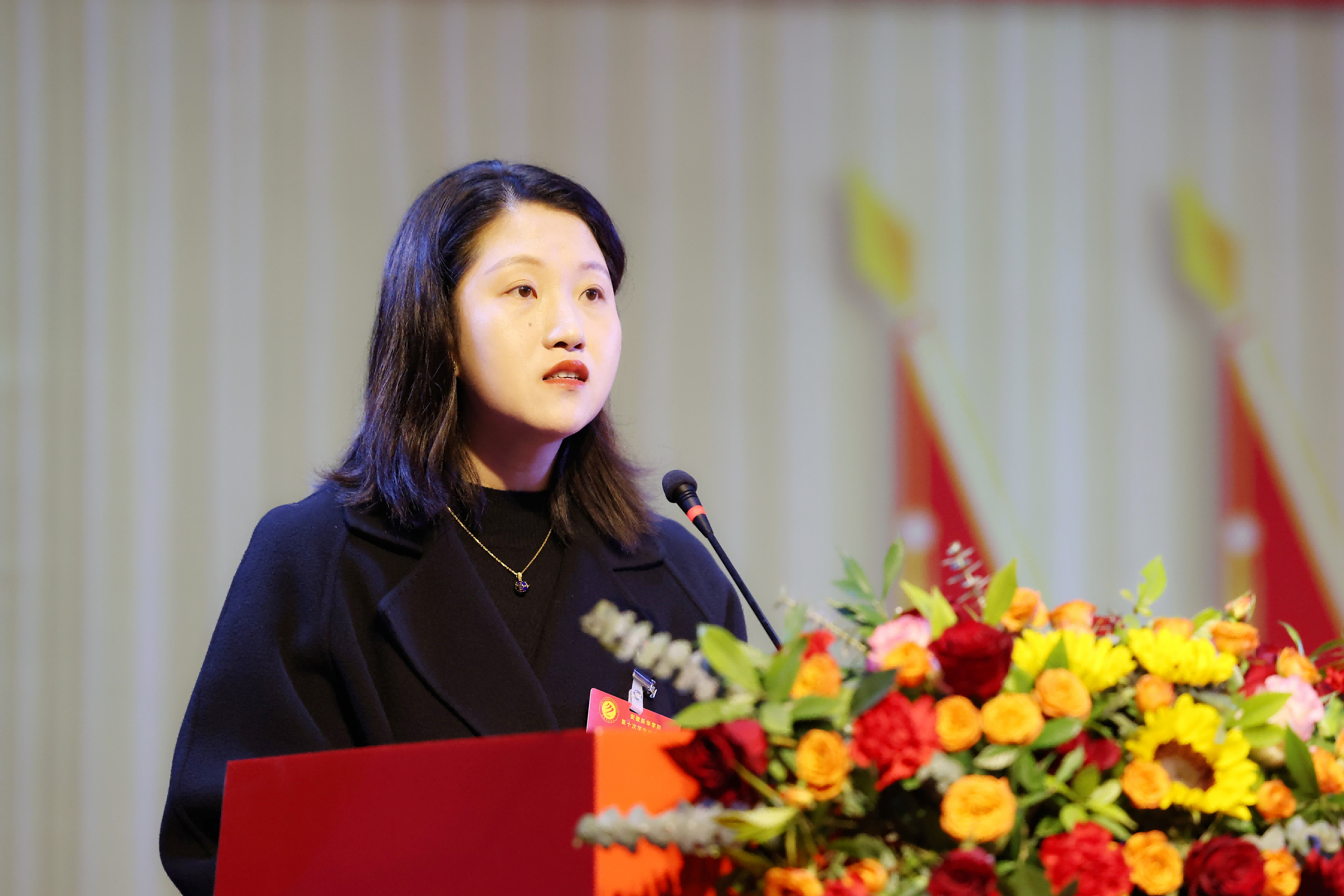 濮明月代表校工会及群众团体致辞。她充分肯定了学生会在服务同学成长、繁荣校园文化中发挥的积极作用,表示校工会始终是同学们成长道路上的坚定支持者,并希望新一届学生会继续发挥桥梁纽带作用,与全校师生一道,共同谱写学校发展新篇章。