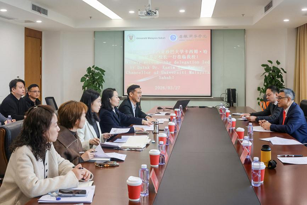 本网讯(通讯员:李俊智)2026年3月27日,马来西亚沙巴大学(Universiti Malaysia Sabah,简称UMS)校长拿督卡西姆・哈吉・曼苏尔教授博士(Prof. Datuk Dr. Kasim Hj. Mansor)一行莅临我校访问交流,双方围绕校际合作、人才培养、科研协作等领域展开深入洽谈。安徽新华学院常务副校长王丽携国际交流合作处、招生办公室、大数据与人工智能学院、城市建设学院等部门主要负责人热情接待来访嘉宾,相关学科骨干教师代表参与交流。