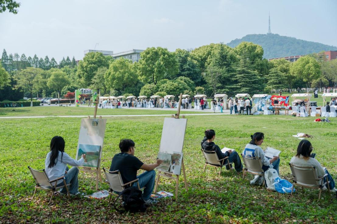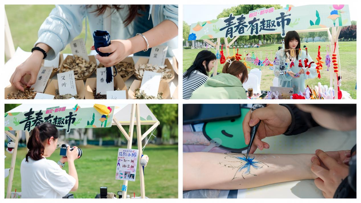 春日市集暖意融融,各类文创作品、手工饰品、摄影写真等摊位琳琅满目,市集部分收益定向捐赠格桑花公益组织,以实际行动传递校园温情与公益初心。