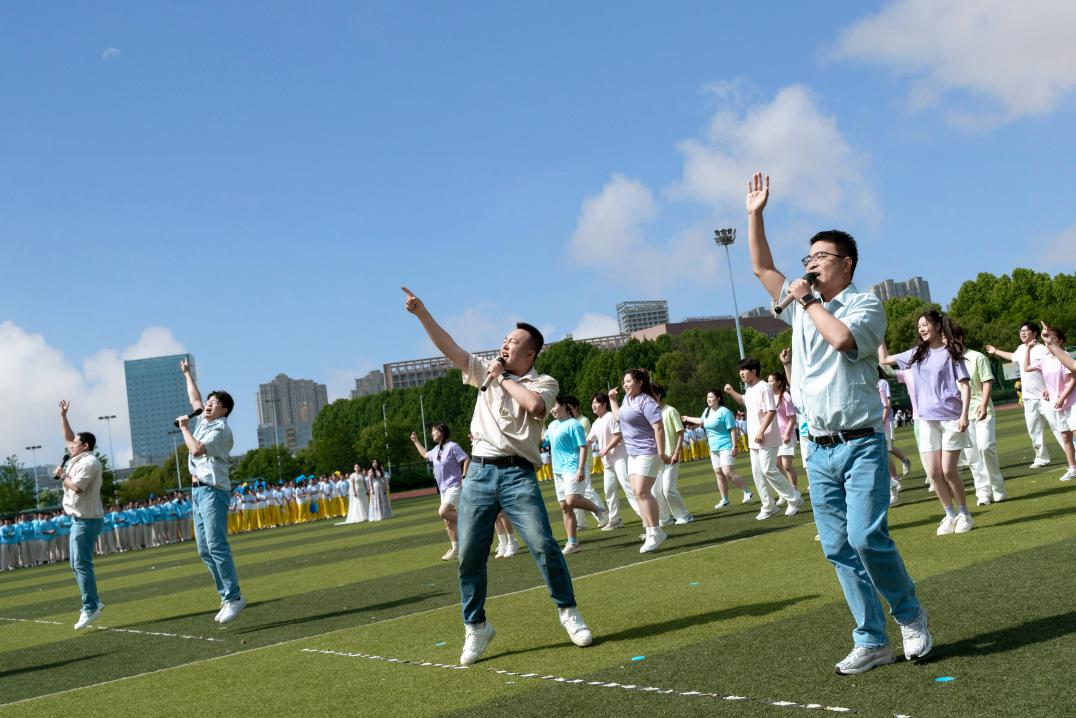 压轴登场的600人大型团体操《青春筑梦新华章》,以厚德、求真、博学、创新四大篇章为核心,通过精妙队形变换,生动诠释校训精神,赢得全场阵阵掌声。