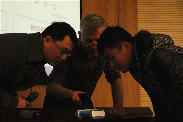 18日上午,Lundy教授首先从哲学的角度介绍了机器人与人的关系、科技给社会带来的,展示了几种机器人的功能,以Romo为例进行了演示,并指导参与报告的同学设计了一些Romo能够完成的动作。Lundy教授谈了机器人在教育方面的应用,如激发学生的应用灵感、团队合作等。Lundy教授就机器人的研制、功能及成本等相关问题回答了学生的提问。