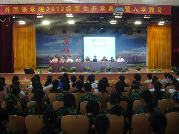 本网讯(通讯员 彭洪磊)9月5日,外国语学院在校大礼堂举行2012级新生开学典礼暨入学教育大会。外国语学院全体教职工出席了315名2012级新生的开学典礼。