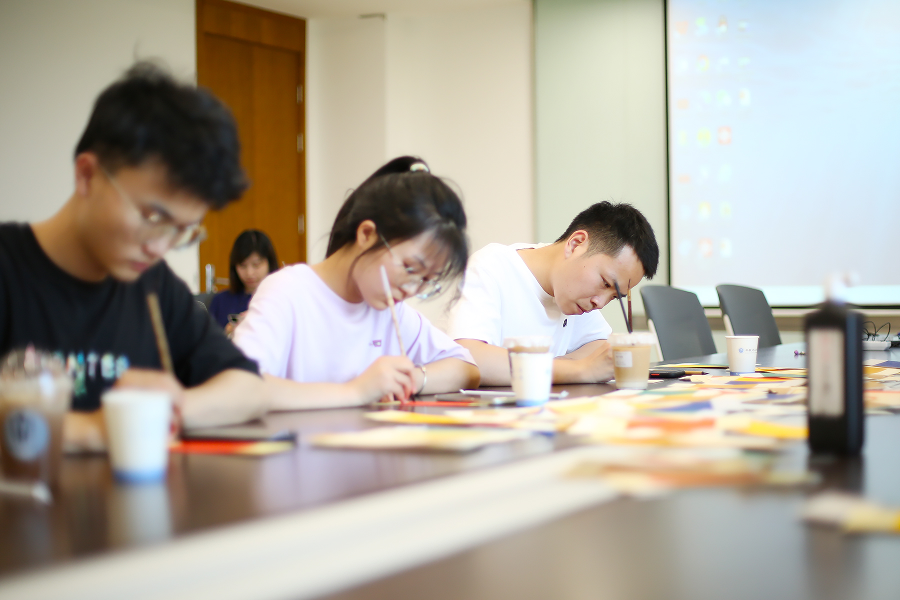 活动伊始,芮萍对艺术学院和书画协会的师生表示热烈的欢迎和衷心的感谢,并简要介绍活动内容。紧接着师生们就开始了自己的创作,一笔一笔认真书写下对2022届毕业生的美好祝福,再由校友服务联合会的学生志愿者为书签盖上定制的印章、挂上五颜六色的流苏,一枚枚精美的书签便制作完成。