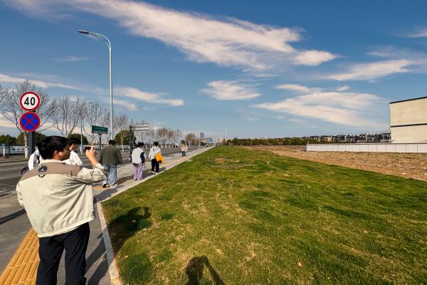 调研当天,师生团队分为测绘组、访谈组与环境分析组展开工作。测绘组利用测距仪、手机等设备对绿地地形、植被分布及周边交通动线进行精准记录;访谈组走访周边居民、地铁通勤人群,收集市民对公共空间的功能诉求;环境分析组则聚焦光照、噪音、人流量等数据,为后续设计提供科学依据。教师吴洲全程指导,引导学生关注场地与城市发展的联动性,强调"以人为本、生态优先"的设计理念。