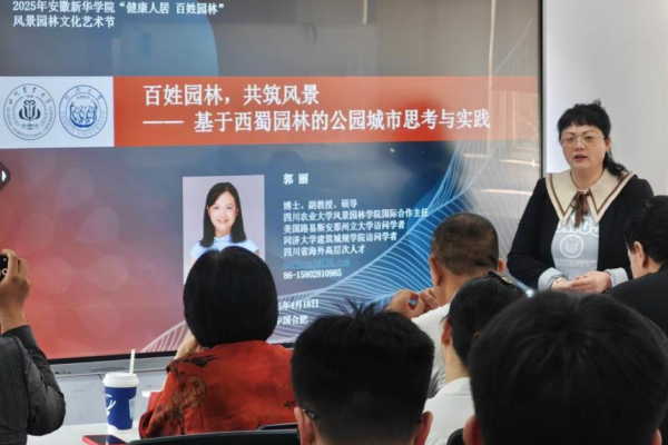 郭丽副教授则针对“传统园林现代转译”的问题,分享了西蜀园林元素在现代景观中的创新应用案例,令在场师生深受启发。