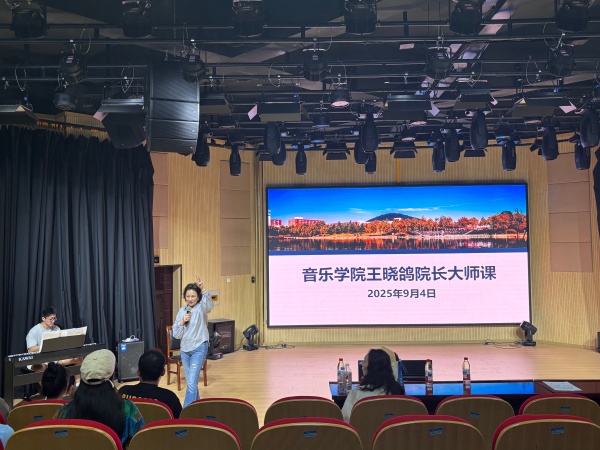 本网讯(通讯员:宋文玉)为进一步提升音乐学院青年教师的教学水平与专业素养,夯实学院师资队伍基础,9月4日,音乐学院成功举办了一场高水平的声乐大师课。本次大师课由音乐学院院长、著名声乐教育家王晓鸽亲自带队并担任主讲,学院全体青年教师齐聚一堂,共同聆听了这场学术盛宴。