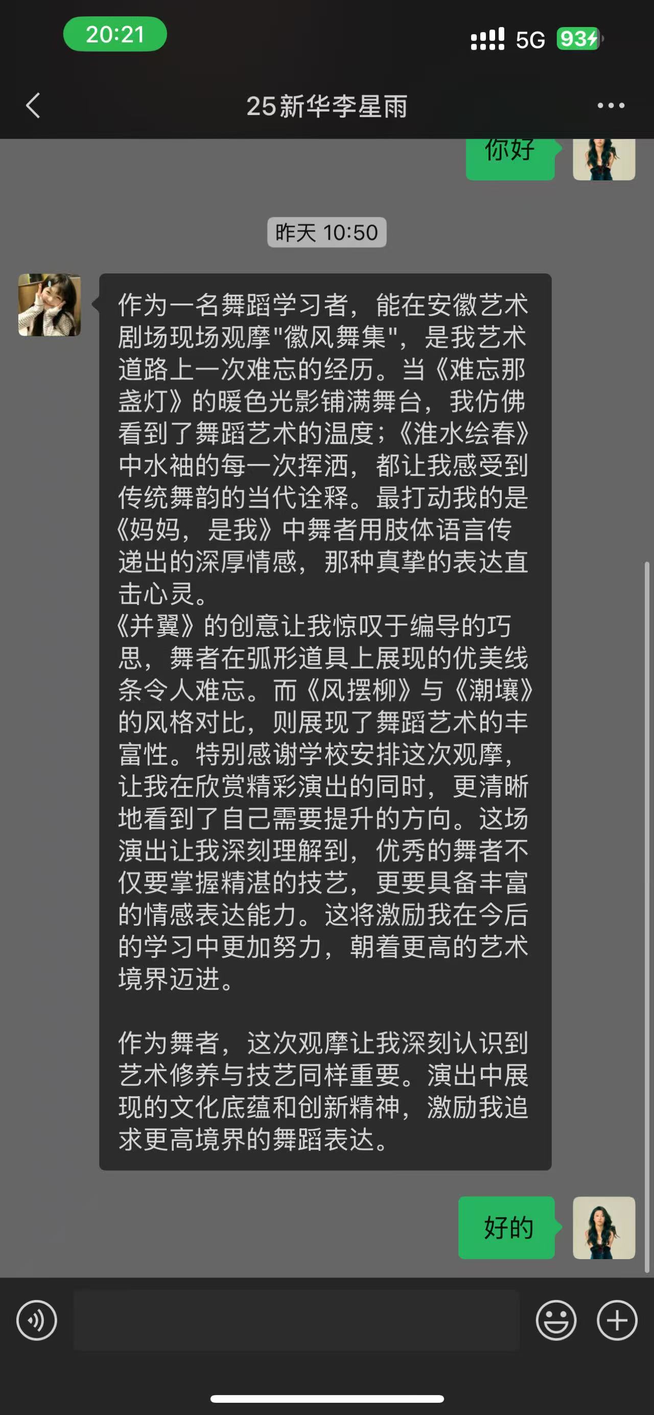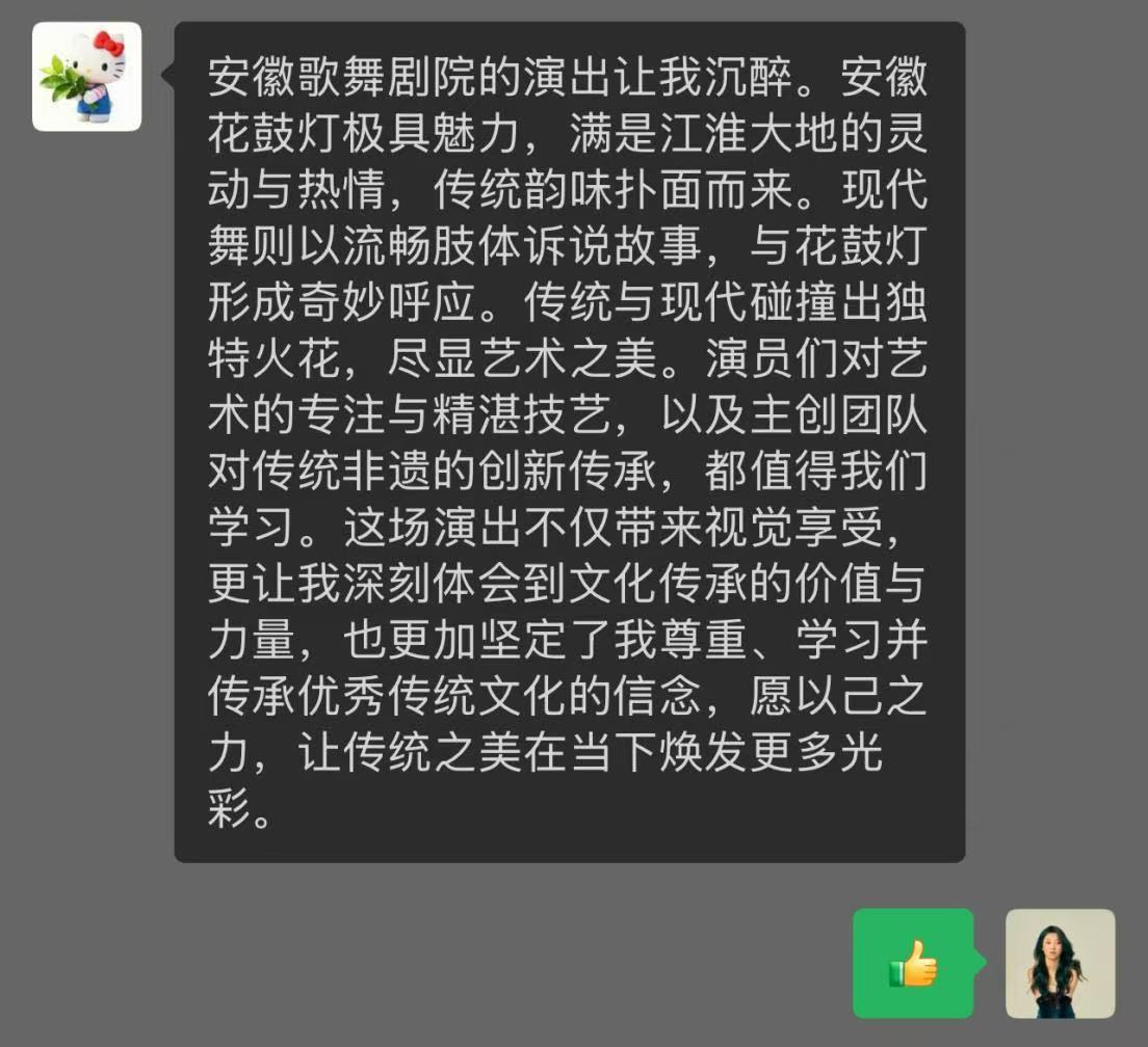 此次观演活动是安徽新华学院艺术学院践行"实践育人"理念的生动实践,既让师生们深度领略了徽风皖韵的文化底蕴,也为表演专业的教学与创作注入了新的灵感。未来,学院将持续搭建此类实践交流平台,推动课堂教学与艺术实践深度融合,助力学子在传承文化、锤炼技艺中成长为高素质艺术人才。