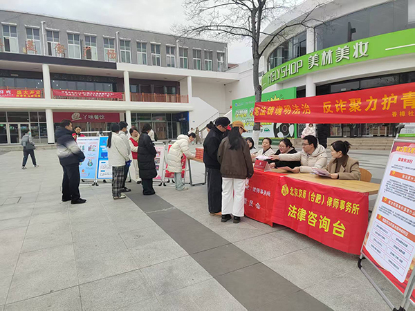 本网讯(通讯员:张大勇)“双12”购物季来临之际,为筑牢校园反诈防线,12月4日中午,我校联合兴园中心宣传部、香樟社居委、高新派出所及北京京师(合肥)律师事务所,在校内举办防电诈普法宣传活动。
