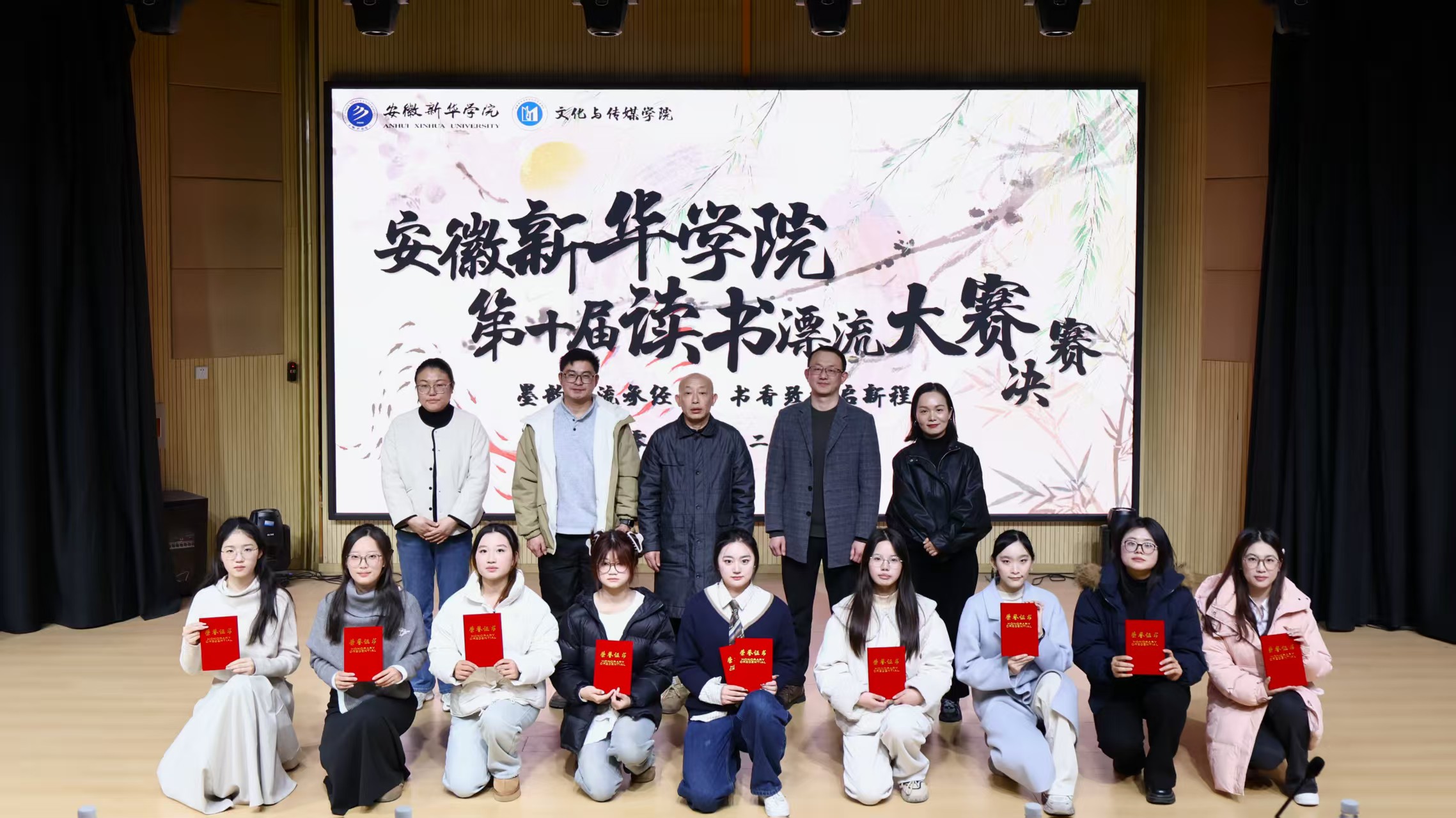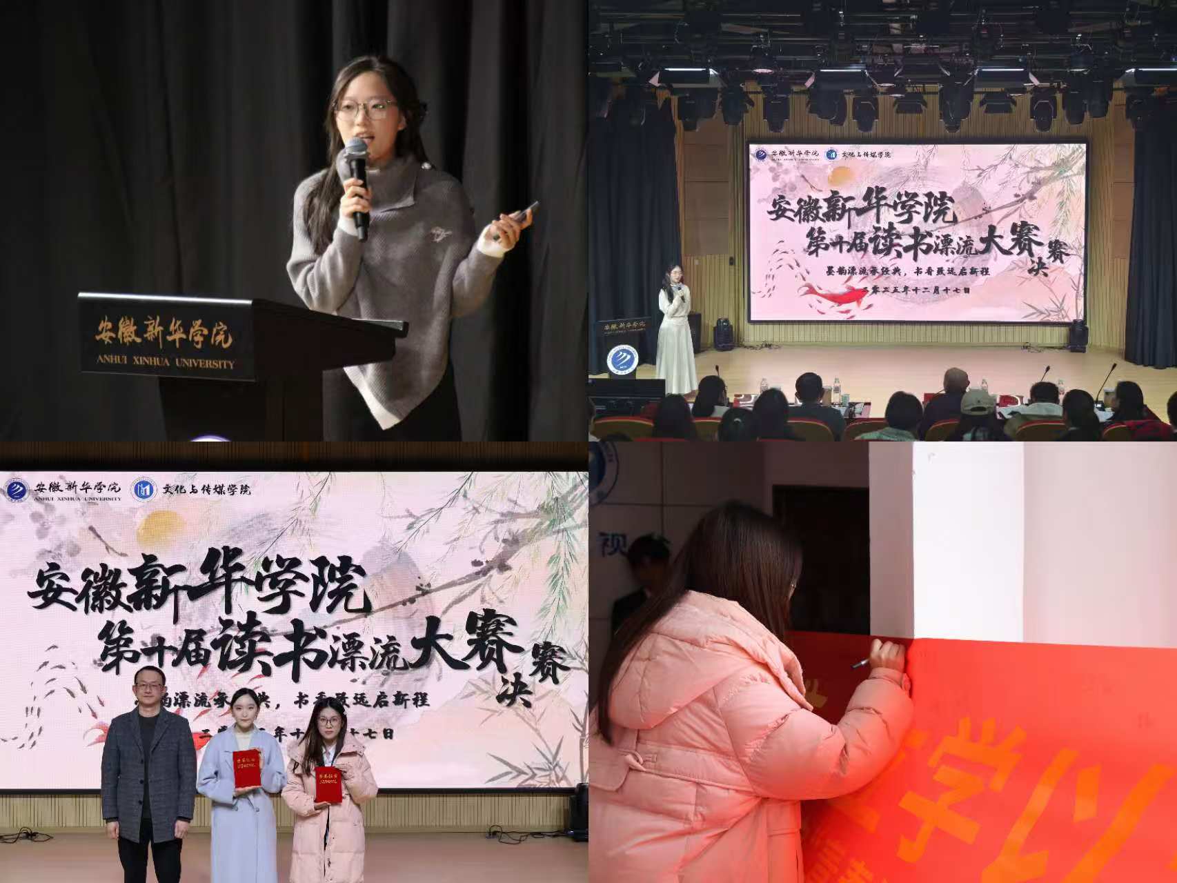 本网讯(通讯员:阳俊琍、张婉琦)为深入推进“青春铭·勤学志”学风建设月活动,营造“读好书、好读书、善学习、乐分享”的校园氛围,2025年12月17日下午,安徽新华学院第十届读书漂流书评大赛决赛在文化与传媒学院演播厅顺利举办。本次大赛由校图书馆与文化与传媒学院联合策划执行,是学院学风建设月“书香浸润”维度的核心活动之一,吸引了全院师生的广泛关注。