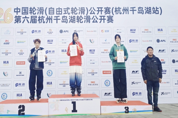 本网讯(通讯员:方星娥)3月21日,2026年中国轮滑(自由式轮滑)公开赛(杭州千岛湖站)在千岛湖秀水广场拉开帷幕。作为国家级高水平自由式轮滑赛事,本次比赛由中国轮滑协会主办,吸引了全国15个省份的千余名轮滑健儿齐聚一堂、同台竞技。我校学子在多个项目中表现出色,充分展现了扎实的轮滑技术与昂扬的竞技风采。