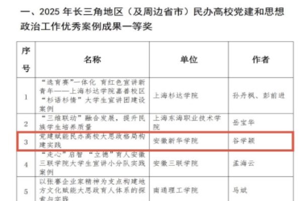 长期以来,安徽新华学院党委始终坚持以习近平新时代中国特色社会主义思想为指导,深入学习贯彻党的二十大和二十届历次全会精神,秉持勤政廉政作风,牢牢把握立德树人根本任务,团结带领全校师生攻坚克难、奋勇争先,在教学、科研、服务社会等方面成果丰硕,赢得了广大师生和党员群众的高度信任与广泛认可。