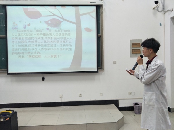 本网讯 (通讯员:彭智) 为加深信息工程学院学生对传染病的了解,提高学生防治的意识,4月17日,信息工程学院与药学院联合召开关于春季预防传染病和预防结核病的宣讲会。本次的主讲人由药院周贝晨和李宇杰担任,各班班委以及各寝室长参加了此次宣讲会。