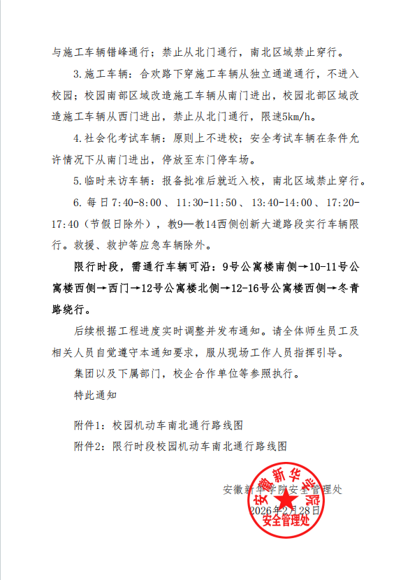 关于下穿施工期间校园通行管理的通知