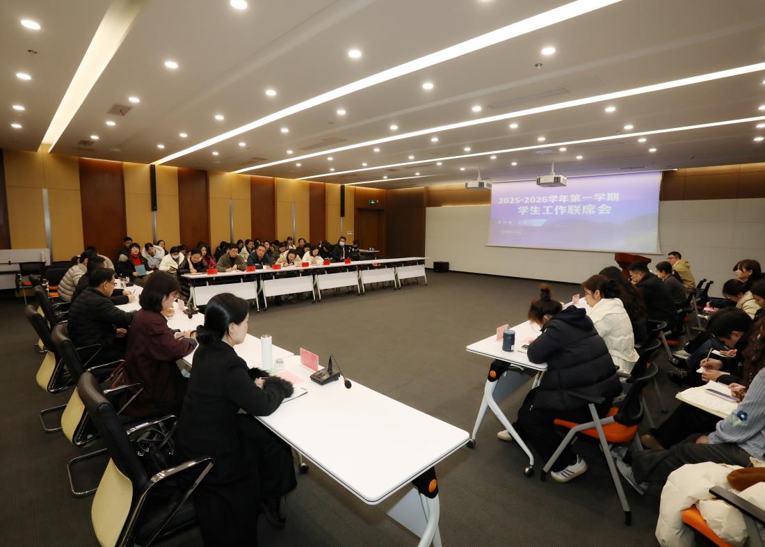本网讯(通讯员:项钰 摄影:翟漱文)1月19日下午,我校召开2025-2026学年第一学期期末学生工作联席会暨学风建设月总结会。校党委书记邸建伟、副校长贺行佳、各单位分管学生工作副院长/院长助理及学生处全体人员参加会议,会议由学生处处长芮萍主持。