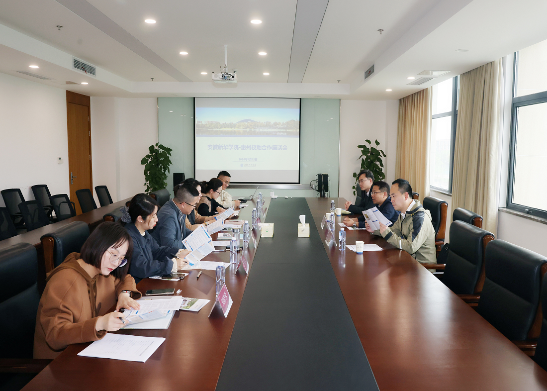 本网讯(通讯员:刘晓蓉)2026年4月13日下午,我校与惠州市校地合作座谈会在学校科研办公楼508会议室举行。惠州市委组织部副部长、人才工作局局长张龙以及组织部相关同志,安徽新华学院副校长贺行佳、就业工作处及相关二级学院出席会议。会议由就业工作处处长孙珊珊主持。