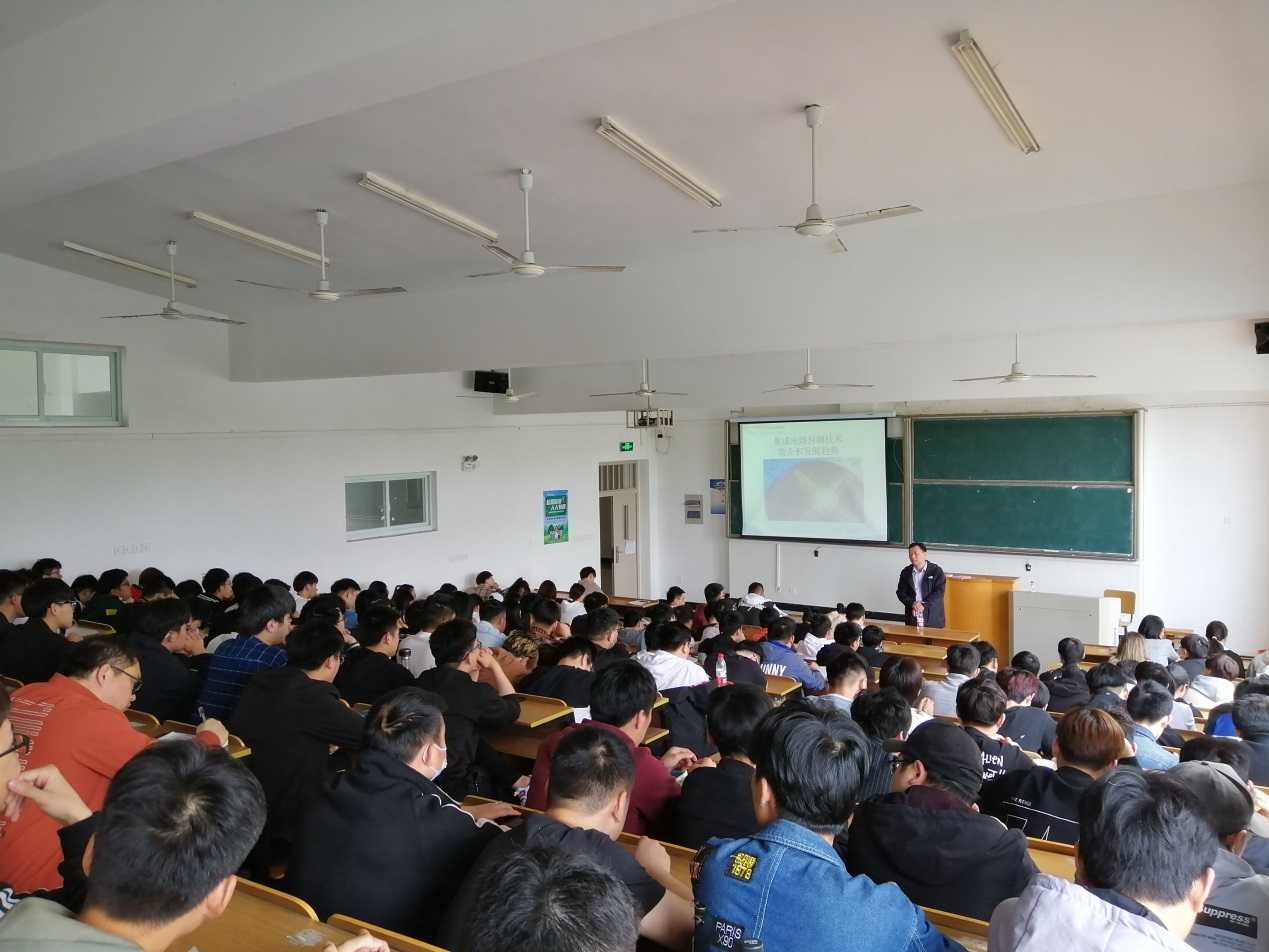 朱志国首先介绍集成电路在我国的行业发展以及安徽省集成电路的现状;其次,详细讲解了集成电路行业中的研发、封装、测试等过程;最后对电子信息工程专业的同学个人发展进行了建议。讲座过程中,朱志国通过案例分析引经据典,通过巧妙的讲座技巧让倾听讲座的学生更加容易理解。