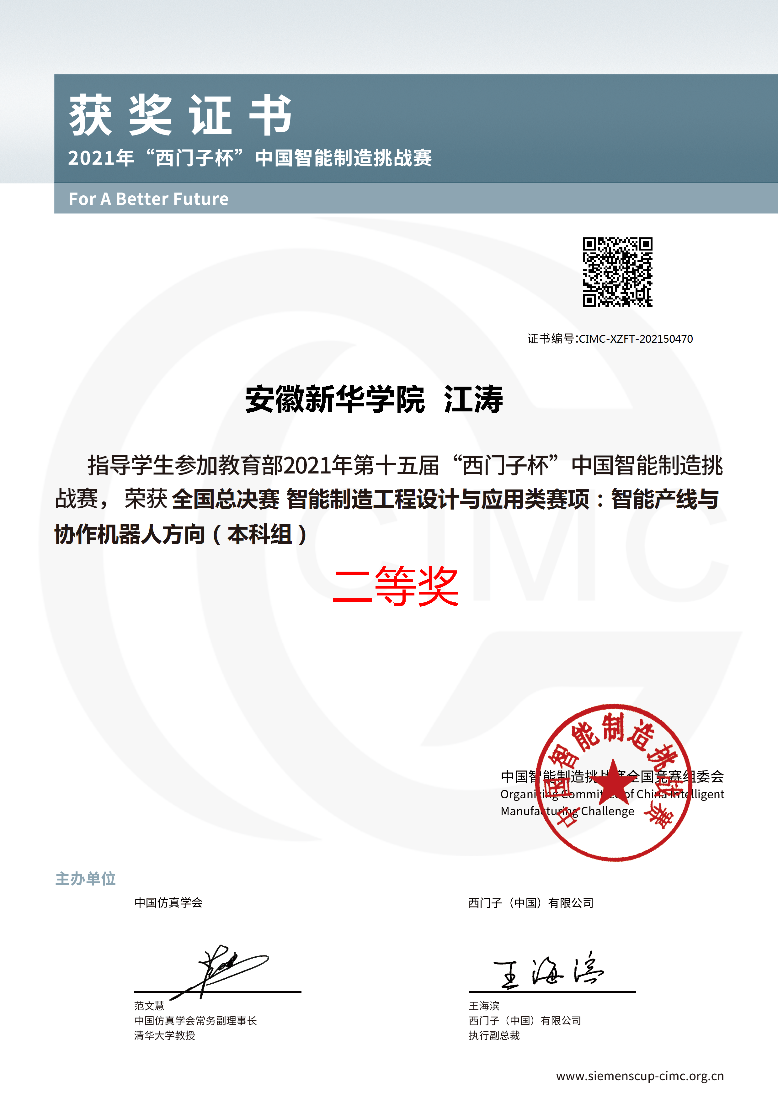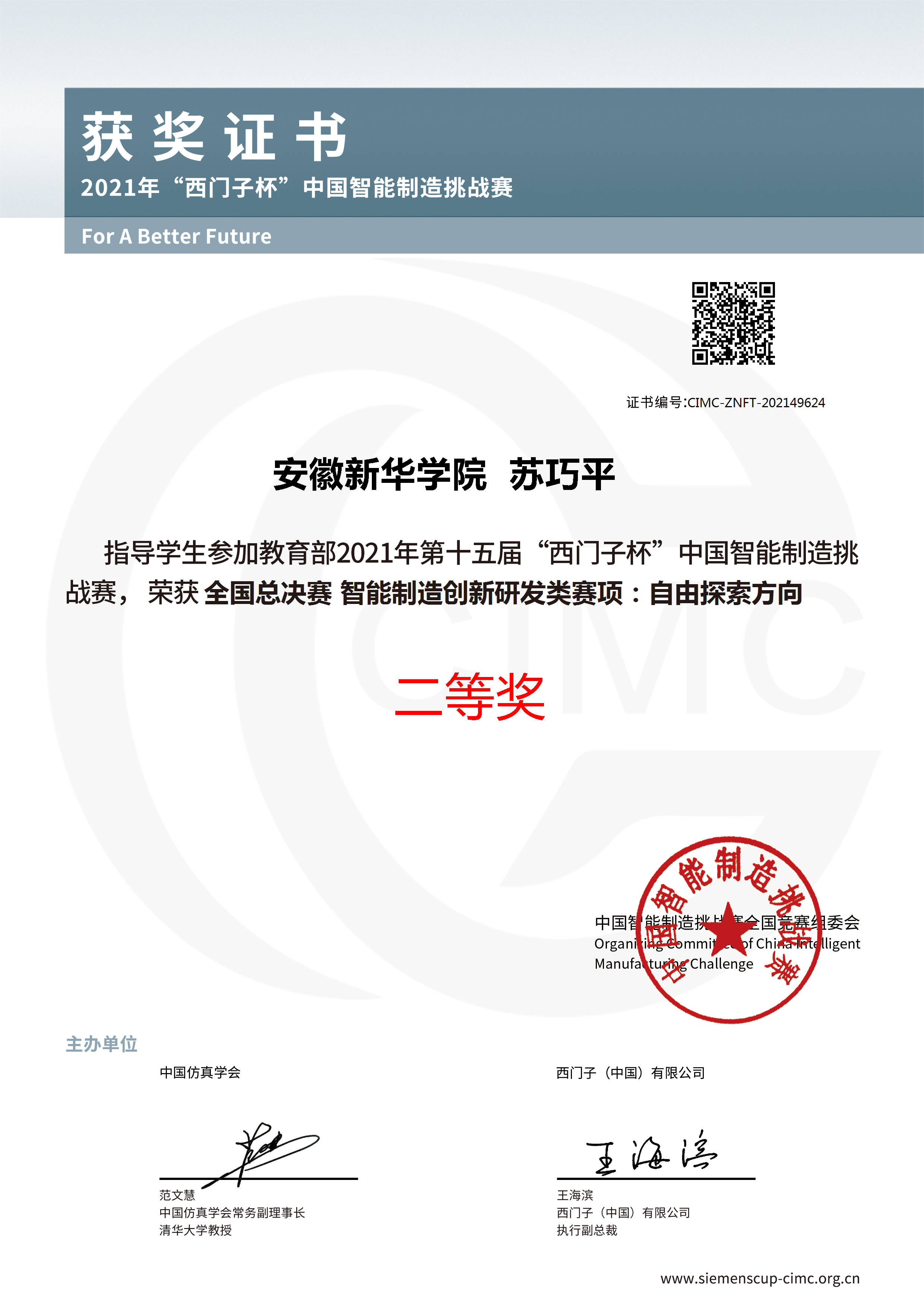 “西门子杯”中国智能制造挑战赛受教育部国际合作与交流司指导,由中国仿真学会和西门子(中国)有限公司联合主办,方向涉及智能制造领域中的科技创新、产品研发、工程设计和智能应用等,是针对智能制造发展所需的技术及创新人才进行培养及选拔的工程类竞赛。自2006年发展至今,大赛在教育部、各省市教育主管部门、制造业企业和全国近800所高校、2000余学院的支持下,已成为中国智能制造领域规模最大、规格最高的国家A类竞赛。此次比赛充分锻炼了学生团队合作能力、创新实践能力,为我校应用型人才培养提供了强有力的支持。
