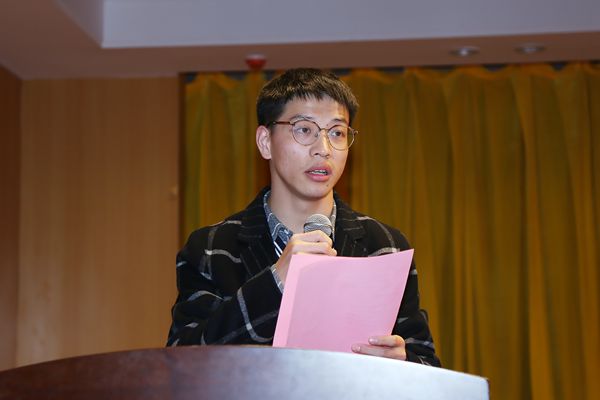 杨培正作为2018级考研学生代表上台发言,他表示将拿出披荆斩棘的勇气,以最饱满的热情和最饱满的斗志,努力拼搏,奋勇向上,取得考研的胜利,同时也对药学院领导老师的关心与支持表达了衷心的感谢。