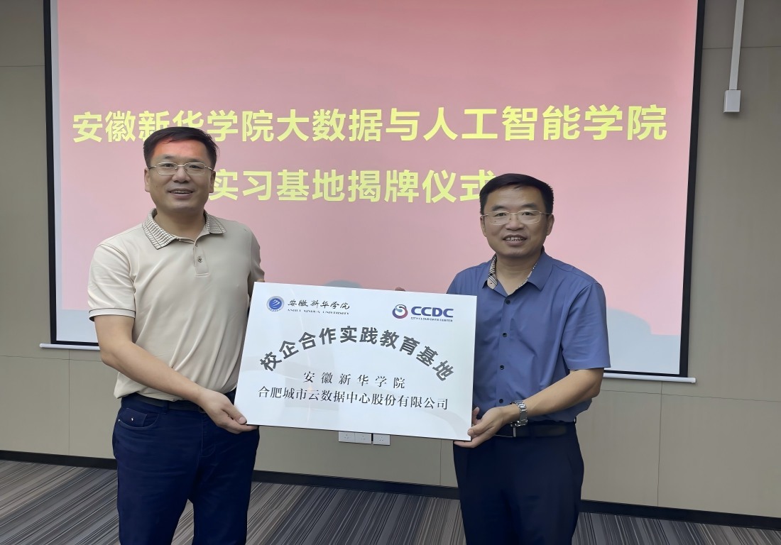 自 2013 年起,合肥城市云与大数据与人工智能学院共同搭建实习实训基地并完成挂牌仪式。自此,双方开启了长期且稳定、深度且全面的合作关系,在多年的合作历程中不断探索创新,持续深化合作内涵。2016年安徽新华学院-合肥城市云数据中心股份有限公司校企合作实践教育基地获批安徽省质量工程校企合作实践教育基地。校企双方在实习实训、毕业论文指导、人才培养方案制定、特聘教授聘任、企业专家报告等方面开展了深入合作,合作成果丰硕。如城市云副总经理李晓洁博士被聘为大数据与人工智能学院产学研副院长,同时也聘为特聘教授。