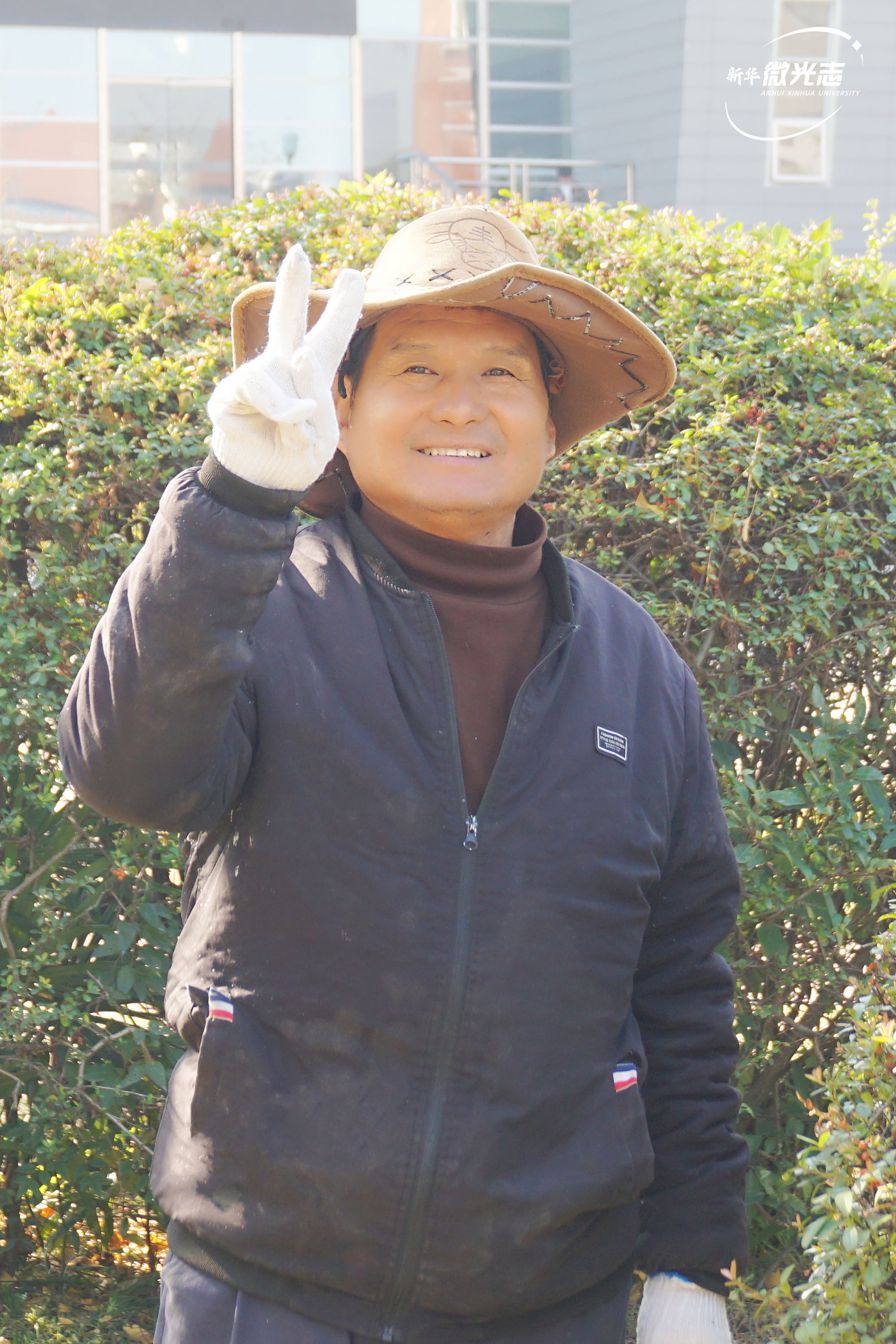 岁月悄然流转,四季轮番更迭,新华园里却藏着不变的风景:春有新枝抽芽,夏有浓荫蔽日,秋有银杏金黄,冬有松柏常青。而守护这份四季景致的,是一道如老槐树般扎根校园的身影——绿化工人郑家付。晨光熹微中,他已在工具间清点农具;夕阳西下时,他仍在草坪旁检查养护情况。十七载寒来暑往,他用汗水浇灌绿意,用匠心守护校园,在“剪枝、浇水、护苗”的平凡日常里,写就了最动人的坚守。