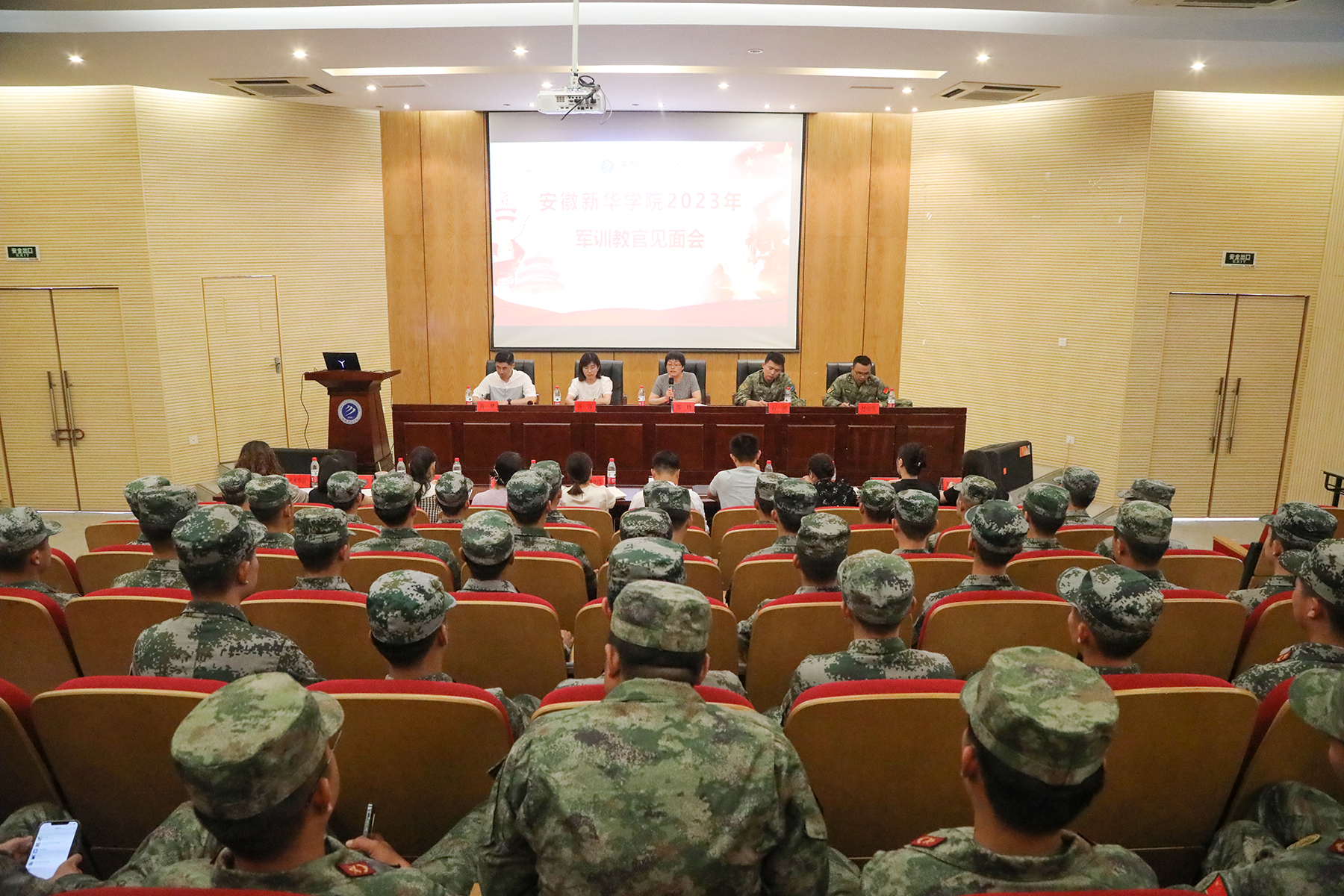 本网讯(通讯员:陈永杰,摄影:陆如海)为全面做好2023年新生军训工作,夯实学生理想信念根基,掌握基本军事知识和技能,学校于8月31日在学术报告厅召开2023年新生军训教官见面会。安徽新华学院校长助理邵玲、合肥市蜀山区武装部军事科参谋石剑、安徽新华学院学生处处长芮萍、合肥市高新区武装部干事赵运生以及承担我校2023年军训工作的全体教官、各二级学院分管学生工作的副院长/院长助理、军训工作小组成员参加本次会议。会议由黄梦主持。