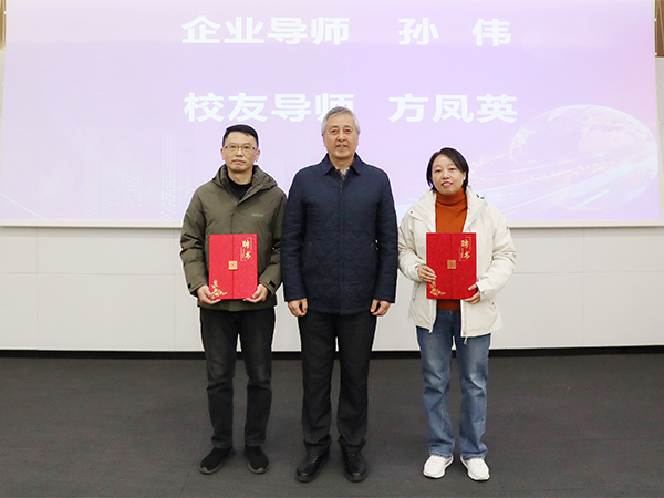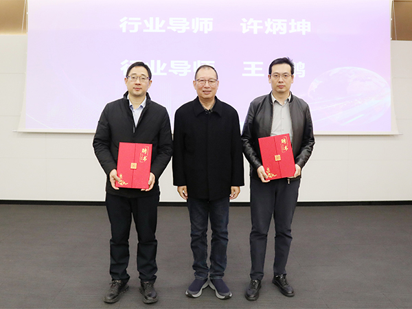 随后,会上举行了特聘导师聘书颁发仪式。彭智宣读了聘任文件,范东生和赵良庆分别为孙伟、方凤英、许炳坤、王鹏等专家颁发“企业导师”“校友导师”和“行业导师”聘书,并合影留念。