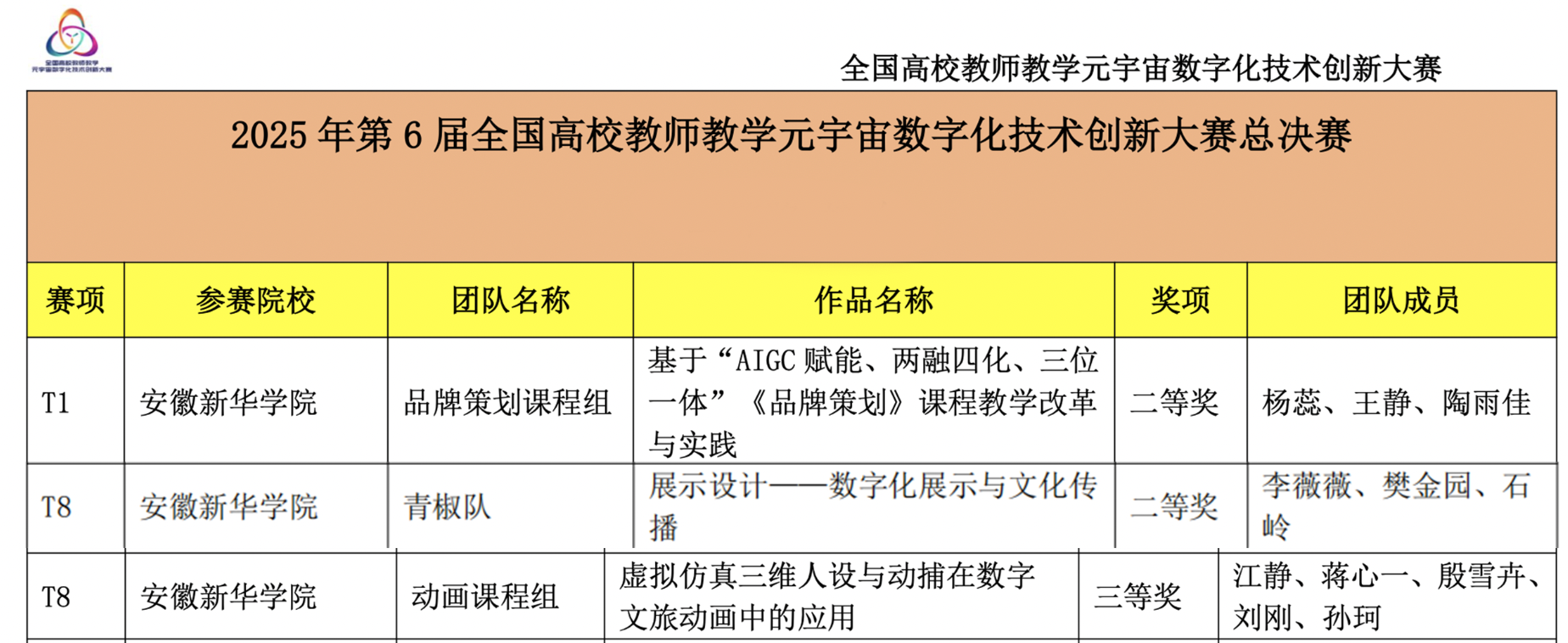 本次获奖涵盖数字媒体、元宇宙技术、创意设计等多个前沿领域,充分体现了艺术学院教师教学能力的广度与深度。