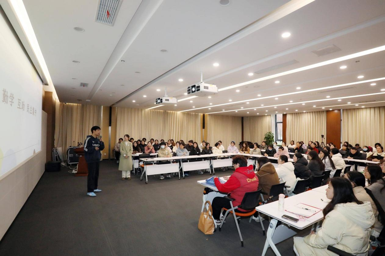 会前,调研团队首先观摩了文化与传媒学院实验班(2024级汉语言文学本5班)第二次“回头看”主题班会。班会现场氛围热烈,同学们围绕学习成长、实践创新等话题积极互动,充分展现了实验班学子的综合素质与精神风貌,为调研团队直观呈现了安徽新华学院实验班日常育人场景。