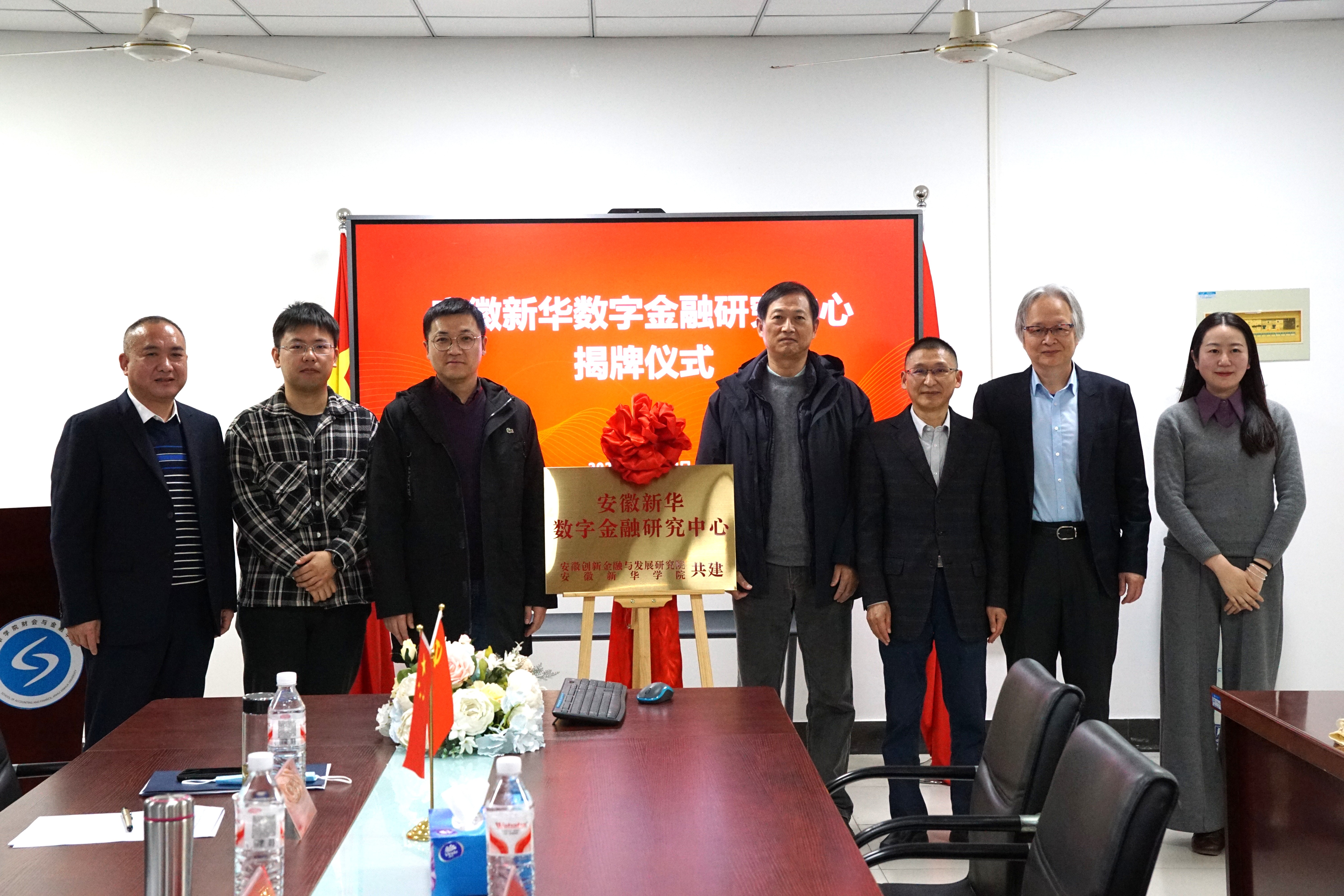 本网讯(通讯员:黄皓迪)为更好迎接数字金融浪潮,打造学术研究、人才培养与社会服务的综合平台,推动数字金融领域的研究与实践,2025年12月20日,安徽新华学院举行数字金融研究中心揭牌仪式暨数字金融与绿色发展学术报告会。中国社科院金融研究所研究员、国家金融与发展实验室科技金融与发展研究中心主任、安徽创新金融与发展研究院院长黄国平教授、台湾政治大学林其昂教授、安徽新华学院副校长王琦进、财会与金融学院院长李光龙、科技处处长邱国新、财会与金融学院执行院长吴山及部分骨干教师代表参加。
