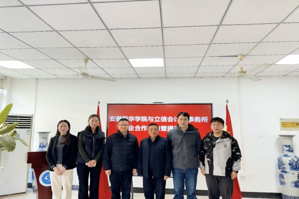 本网讯(通讯员:高雪琪 摄像:翟漱文)为深化产教融合,助力高素质应用型财经人才培养,12月25日,我校举行与立信会计师事务所校企合作签约暨揭牌仪式。立信会计师事务所安徽分所党支部书记周华伦、常务副所长洪峰,安徽新华学院副校长贺行佳,财会与金融学院执行院长吴山、副院长张璐等出席仪式。