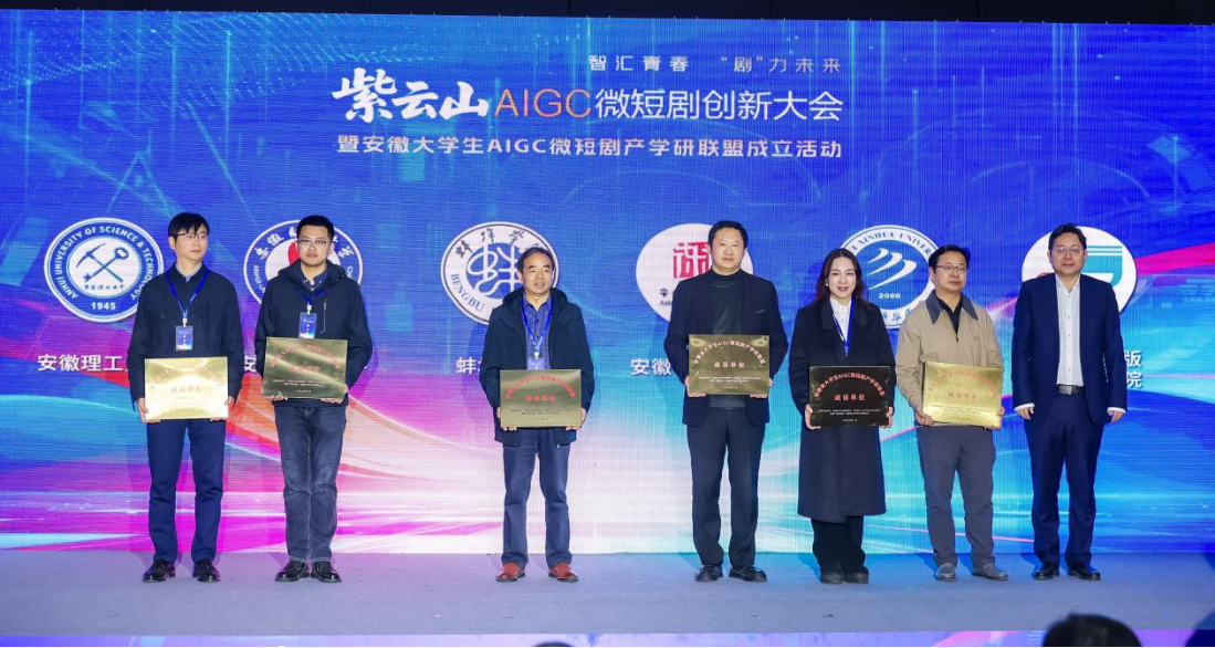 本网讯(通讯员 姚露露)3月24日上午,紫云山AIGC微短剧创新大会暨安徽大学生AIGC微短剧产学研联盟成立活动在合肥市紫云山(包河)文化创意产业园成功举办 。我校教务处副处长施伶俐、文化与传媒学院产学研副院长邢语及戏剧影视系主任助理姚露露受邀出席本次盛会。活动现场,我校正式获牌,成为全省首批加入该联盟的30所高校之一。