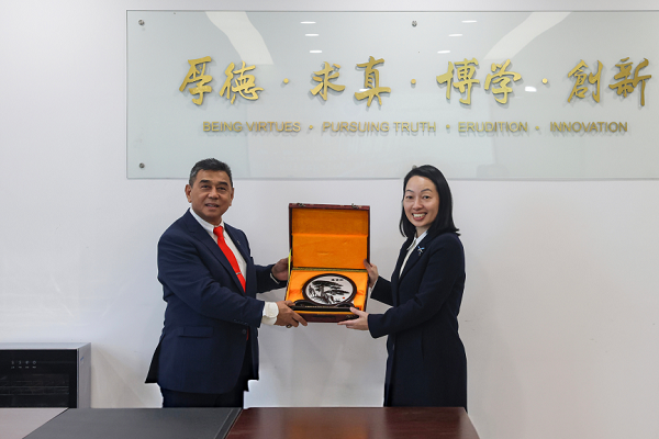 拿督卡西姆・哈吉・曼苏尔校长对我校的热情接待表示感谢,他详细介绍了马来西亚沙巴大学的办学特色、学科优势和国际合作布局。作为马来西亚知名公立大学,沙巴大学在海洋科学、环境科学、商业金融、工程技术等领域实力突出,拥有丰富的国际教育合作经验。他表示,两校学科互补性强,合作潜力巨大,希望双方能在各方面开展务实合作,共同培养具有全球视野的高素质人才。