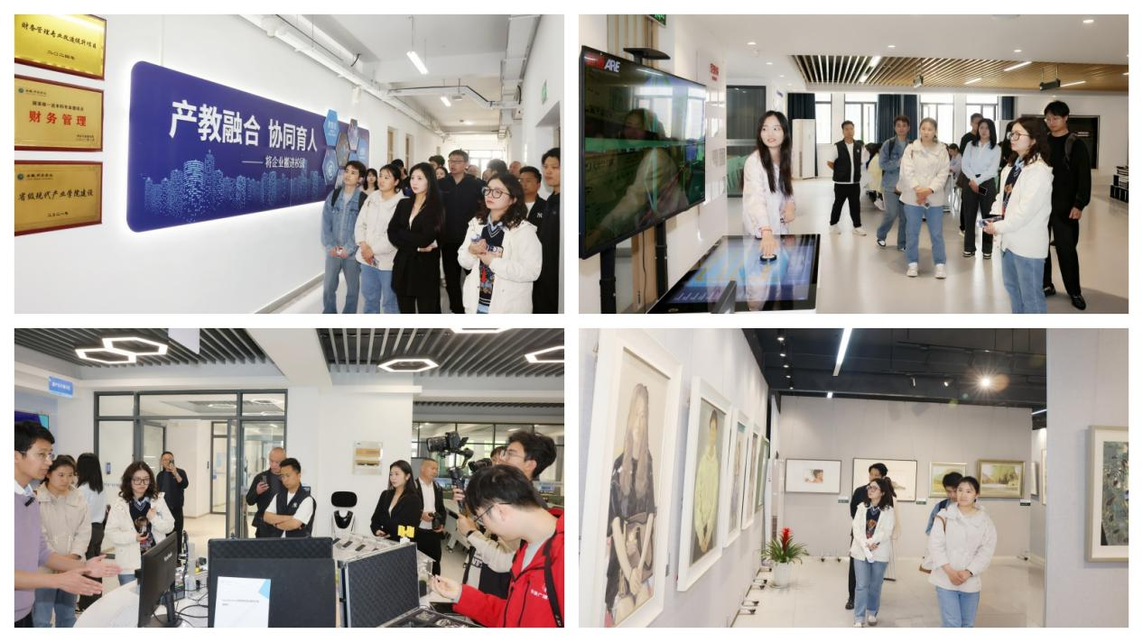 启动仪式结束后,媒体嘉宾先后走进电子工程学院/智能制造学院、艺术学院、财会与金融学院、大数据与人工智能学院特色实验实训中心,实地探访教学场景、观摩学生实践成果。从智能制造到艺术展览,从数字金融到人工智能,先进完备的实训条件、紧贴行业的教学内容、鲜活亮眼的学生作品,充分展现了学校应用型办学的硬核实力与育人特色。