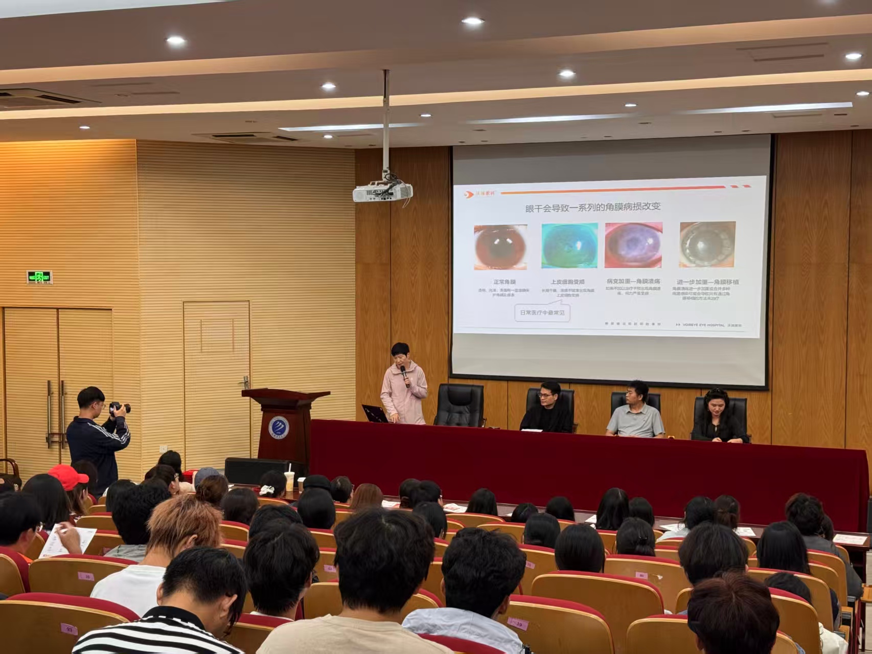 借此机会,付玲玲院长也向在座师生分享了实用的眼健康知识。她强调:“当前,青少年近视率高发,大学生群体中干眼症、视疲劳等问题也日益普遍。这提醒我们,爱护眼睛绝非一朝一夕之事。希望大家能养成良好的用眼习惯,包括减少连续近距离用眼时间、增加户外活动、保持正确的读写姿势等。我们举办这次设计大赛的初衷,正是希望借助艺术的力量,让更多年轻人以生动、有趣的方式关注并理解眼健康的重要性,将爱眼护眼的理念深入人心。”
