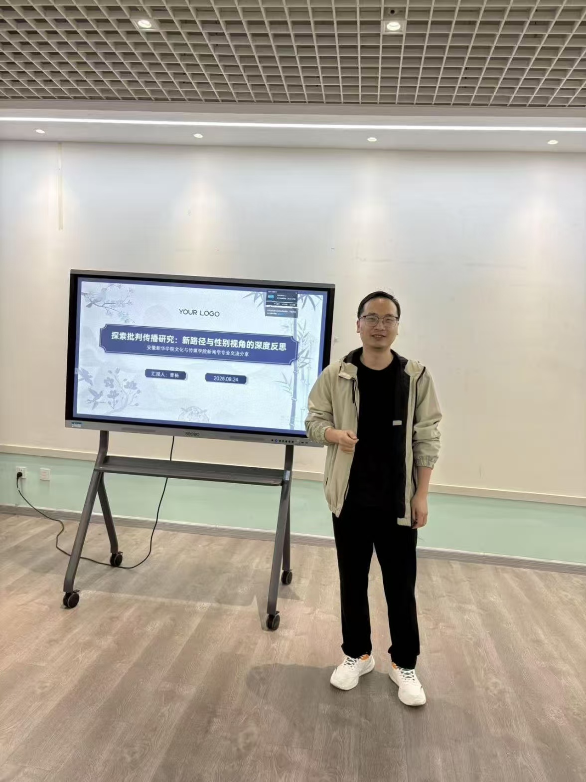 本网讯(通讯员:曹杨)2025年9月24日,安徽新华学院文化与传媒学院新闻学专业在教8-103开展了以“探索批判传播研究:新路径与性别视角的深度反思”为主题的学术研讨会,新闻学专业教师、圣彼得堡国立大学媒介传播与新闻学博士候选人曹杨,结合此前参与复旦大学第十四届 “新媒体与全球信息社会的公正传播” 研究生暑期学校的学习经历作专题汇报。曹杨老师此次参训不仅获得与国际学者、全球青年研究者对话的契机,更围绕暑期学校 “批判传播研究新路径” 核心主题,积累了数字监控、传播劳动、社交媒体批判、数字公地等前沿议题的深度认知。新闻学全体教师共同参会,围绕汇报内容展开深入研讨。