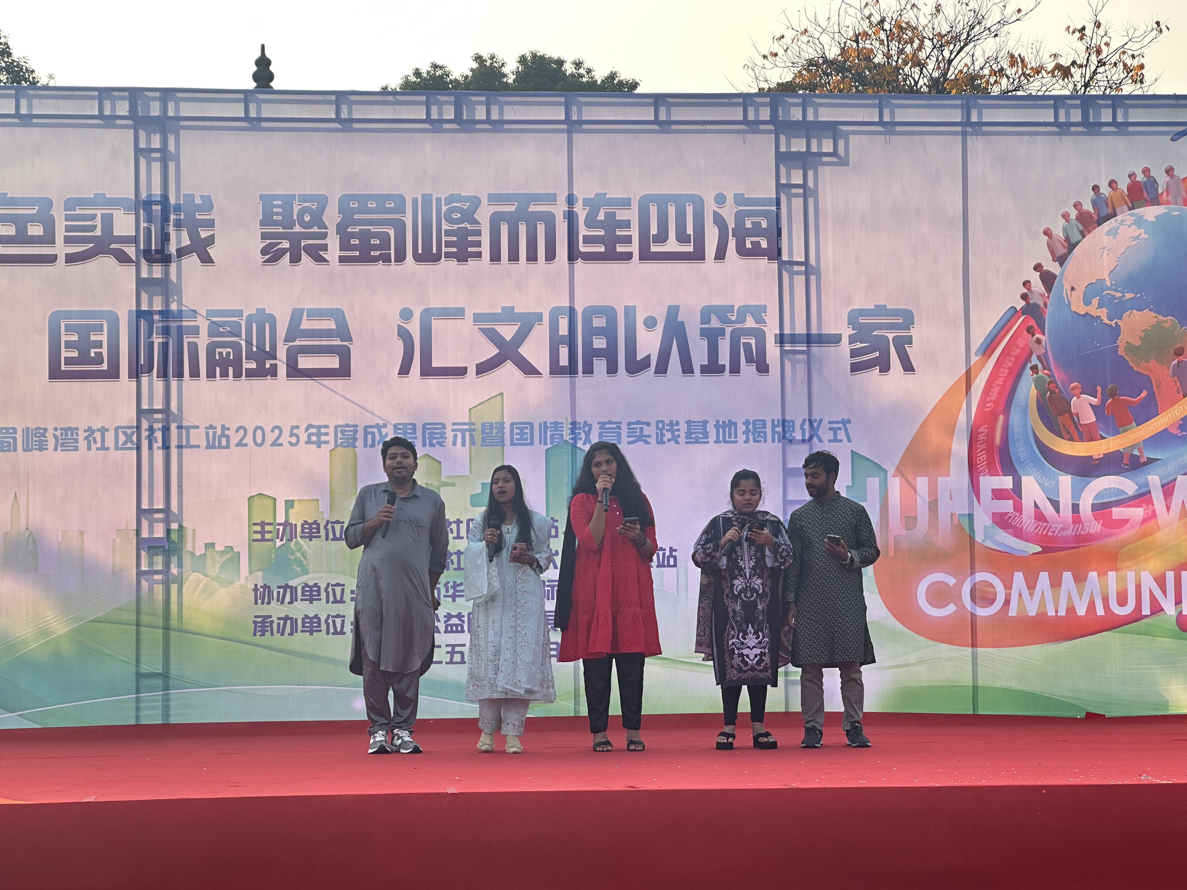 活动在充满国际色彩的文艺展演与故事分享中进入高潮。我校留学生代表与社区居民同台献艺,带来了极具本国特色的歌舞表演;在“知华友华·故事分享会”环节,留学生们深情讲述了他们在蜀峰湾社区参与志愿服务和文化活动的亲身经历,分享了他们对合肥这座“第二故乡”的深厚情感与独特观察,生动展现了我校在国际化人才培养和跨文化交流教育方面取得的扎实成效。