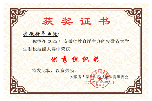 本网讯(通讯员:王贝贝)近日,安徽省大学生财税技能大赛(案例赛)圆满落幕。我校财会与金融学院学子在此次赛事中表现优异,凭借扎实的专业功底和出色的团队协作,共斩获一等奖2项、二等奖14项、三等奖27项,获奖总数位居全省高校第三名。