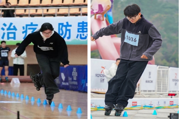 自由式轮滑集技巧、速度与艺术感于一体,是轮滑运动中极具魅力的项目。赛场上,队员们沉着冷静、全力以赴,生动诠释了新华学子的拼搏姿态。其中,任心蕊同学表现尤为突出:在前交叉速度过桩成年女子组比赛中,她以5.296秒的优异成绩斩获亚军,展现出顶尖的控桩速度与滑行技巧;在双鱼速度过桩成年女子组中,她同样稳定发挥,取得第五名的好成绩。刘梦雅同学则在前交叉速度过桩成年女子组中以6.103秒的成绩荣获第四名。此外,我校首次参赛的两名男队员也表现不俗,分别获得前交叉速度过桩第五名和双鱼速度过桩第八名。队员们用汗水诠释热爱,用拼搏书写荣耀,为学校赢得了国家级赛事荣誉。