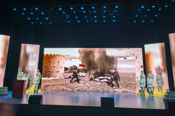 该作品以激昂的旋律和深情的唱腔,生动再现了新四军在江淮大地浴血奋战的光辉历程,重点展现了合肥蒋家河口战斗打响新四军抗日第一枪的重要历史时刻。师生们以饱满的情感投入演出,将红色故事与艺术表达紧密结合,赢得现场观众的热烈掌声与高度评价。