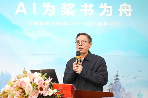 王琦进在讲话中表示,本届读书节以“AI为桨书为舟,阅读作伴共远航”为主题,希望广大师生涵养阅读自觉、锤炼批判思维、坚持知行合一,在书香中明确成长方向。