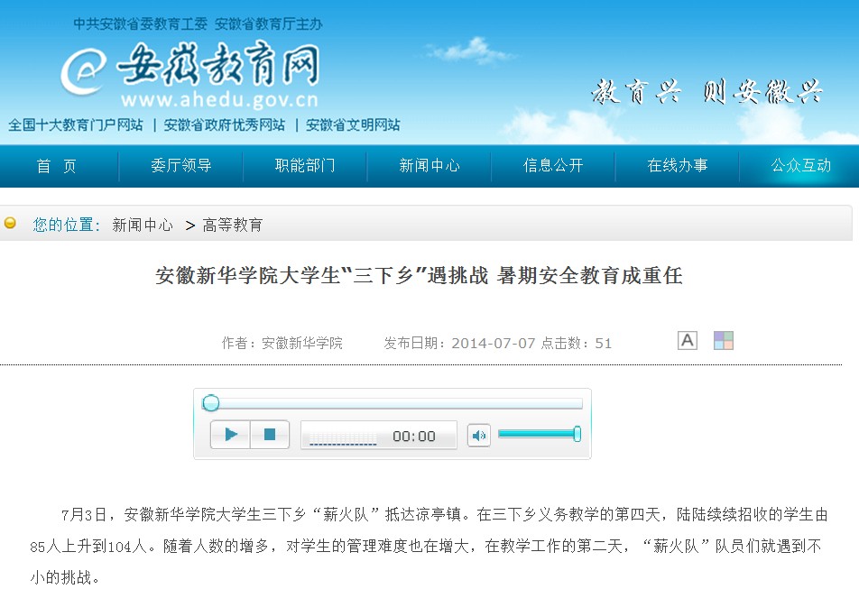 安徽教育网:安徽新华学院大学生“三下乡”遇挑战 暑期安全教育成重任